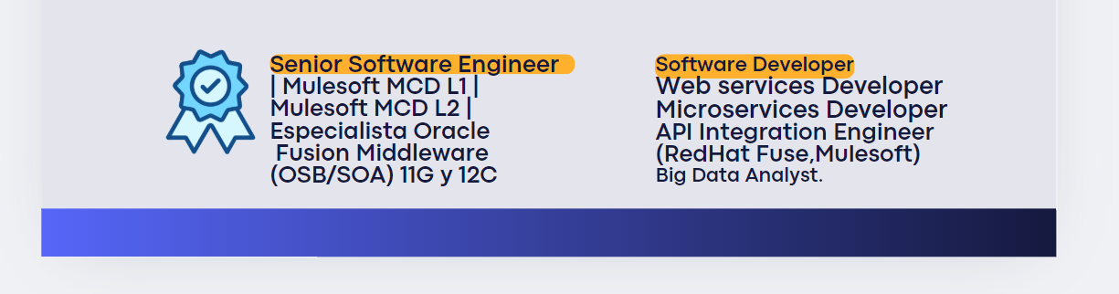 Nuestras certificaciones en MuleSoft garantizan que nuestras soluciones sean robustas,escalables y seguras. Además, nuestro conocimiento en Oracle Fusion Middleware nos permite optimizar los procesos de nuestros clientes.